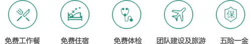 免費工作餐、免費住宿、免費體檢、團隊建設及旅游、五險一金、各類補貼(通訊補貼、交通補貼、節日福利、生日福利、高溫補貼)等完善的福利體系。