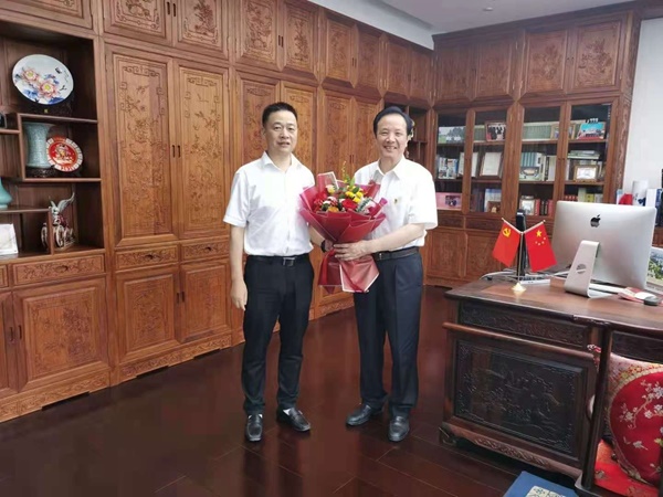 七一前夕,許村鎮(zhèn)黨委書記朱利江慰問嘉興市優(yōu)秀共產(chǎn)黨員、宏達控股集團黨委書記沈國甫。