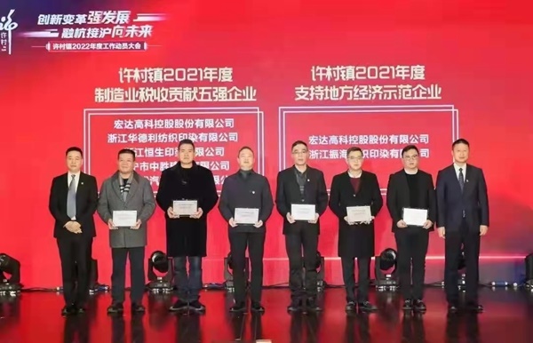2022年2月12日下午,許村鎮(zhèn)召開“創(chuàng)新變革強發(fā)展 融杭接滬向未來”2022年度工作動員大會,“宏達高科”在會上獲評“2021年度制造業(yè)稅收貢獻五強”和“2021年度支持地方經濟示范企業(yè)”榮譽稱號。