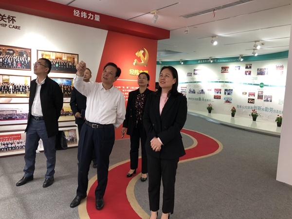 許紅蓮市長一行參觀了公司黨建展廳;在公司會議室召開座談會,聽取了沈國甫董事長關于公司當前生產經營、產品創新、發展規劃等方面情況的匯報。