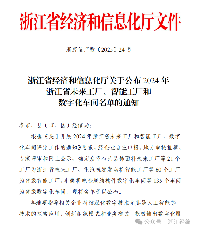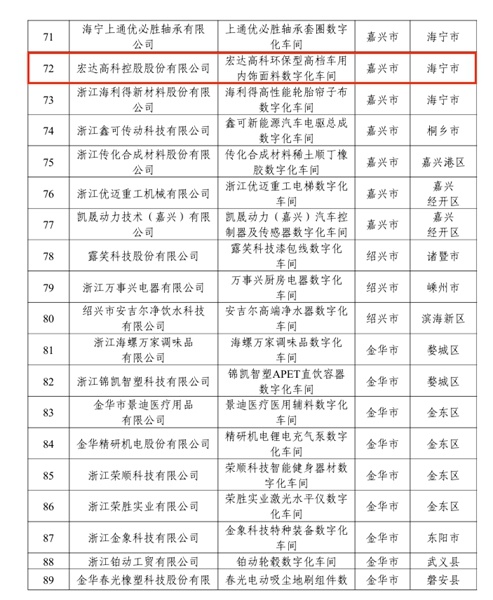 1月18日,浙江省經(jīng)濟和信息化廳對2024年浙江省未來工廠、智能工廠和數(shù)字化車間名單進行了公布,宏達高科環(huán)保型高檔車用內(nèi)飾面料數(shù)字化車間獲評省級數(shù)字化車間。