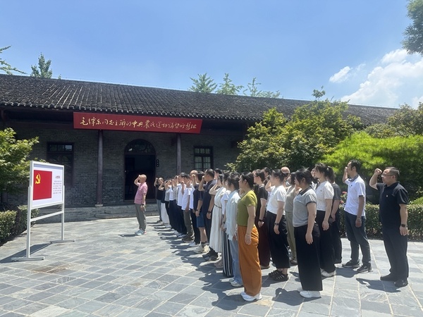 在中央農民運動講習所舊址前,全體黨員舉起右拳,在黨委副書記許建舟的領誓下,莊嚴宣誓,用鏗鏘有力的聲音重溫了入黨誓詞。