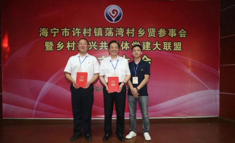 2019年8月16日下午,海寧市許村鎮(zhèn)蕩灣村鄉(xiāng)賢參事會暨鄉(xiāng)村振興共同體黨建大聯(lián)盟成立大會在該村舉行,我集團(tuán)公司董事長沈國甫在大會上被聘為許村鎮(zhèn)蕩灣村鄉(xiāng)賢參事會名譽(yù)會長。
