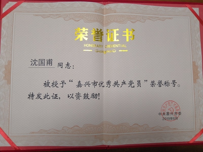 2019年6月28日下午,“不忘初心、爭先創(chuàng)優(yōu)、追夢奔跑”嘉興市慶祝中國共產(chǎn)黨成立98周年表彰大會在嘉興大劇院隆重舉行。市委書記張兵講話,市委副書記、市長毛宏芳主持,市領(lǐng)導(dǎo)劉冬生、高玲慧、孫賢龍等出席。會上,表彰了全市優(yōu)秀共產(chǎn)黨員。宏達控股集團黨委書記、董事長沈國甫榮獲“嘉興市優(yōu)秀共產(chǎn)黨員”。