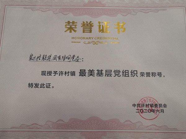 2020年6月30日晚,保持最?yuàn)^進(jìn)姿態(tài)·展現(xiàn)最精彩許村——許村鎮(zhèn)慶祝中國(guó)共產(chǎn)黨成立99周年暨“最美奮斗者”表彰晚會(huì)在許村鎮(zhèn)政府五樓會(huì)議廳隆重舉行。會(huì)上宏達(dá)控股集團(tuán)黨委被評(píng)為最美基層黨組織。